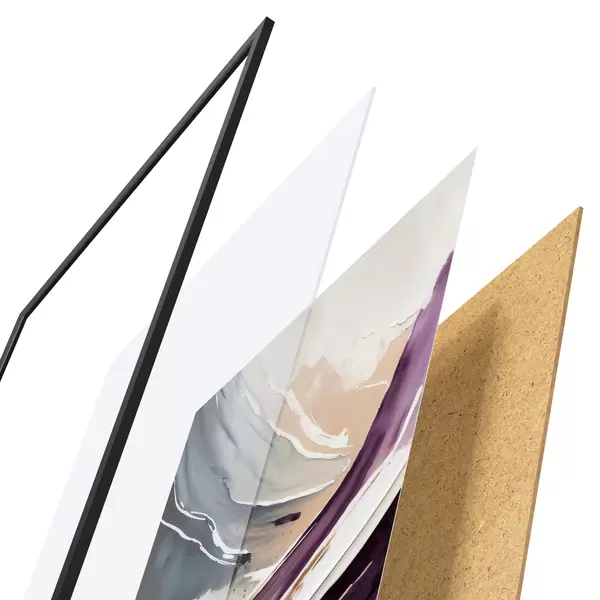Le poster se compose d'un cadre, d'un plexiglas, d'une image imprimée et d'un support en aggloméré. Le poster peut être immédiatement accroché au mur grâce aux fixations au dos.