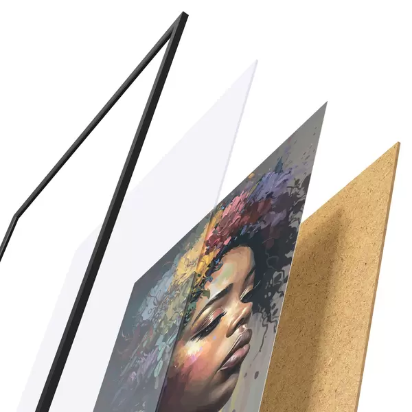 Le poster se compose d'un cadre, d'un plexiglas, d'une image imprimée et d'un support en aggloméré. Le poster peut être immédiatement accroché au mur grâce aux fixations au dos.