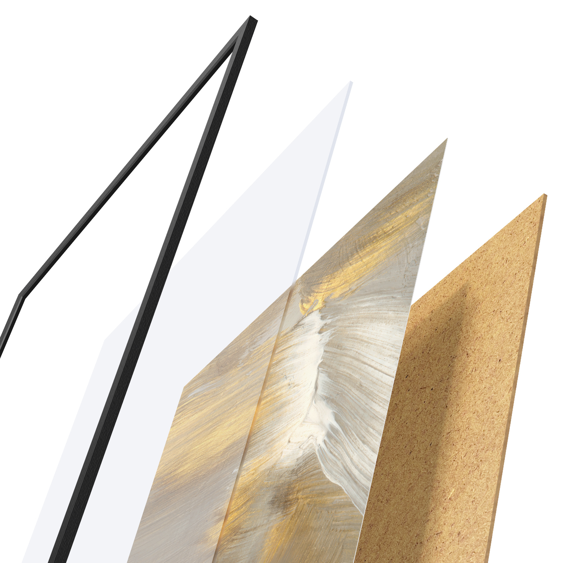 Le poster se compose d'un cadre, d'un plexiglas, d'une image imprimée et d'un support en aggloméré. Le poster peut être immédiatement accroché au mur grâce aux fixations au dos.