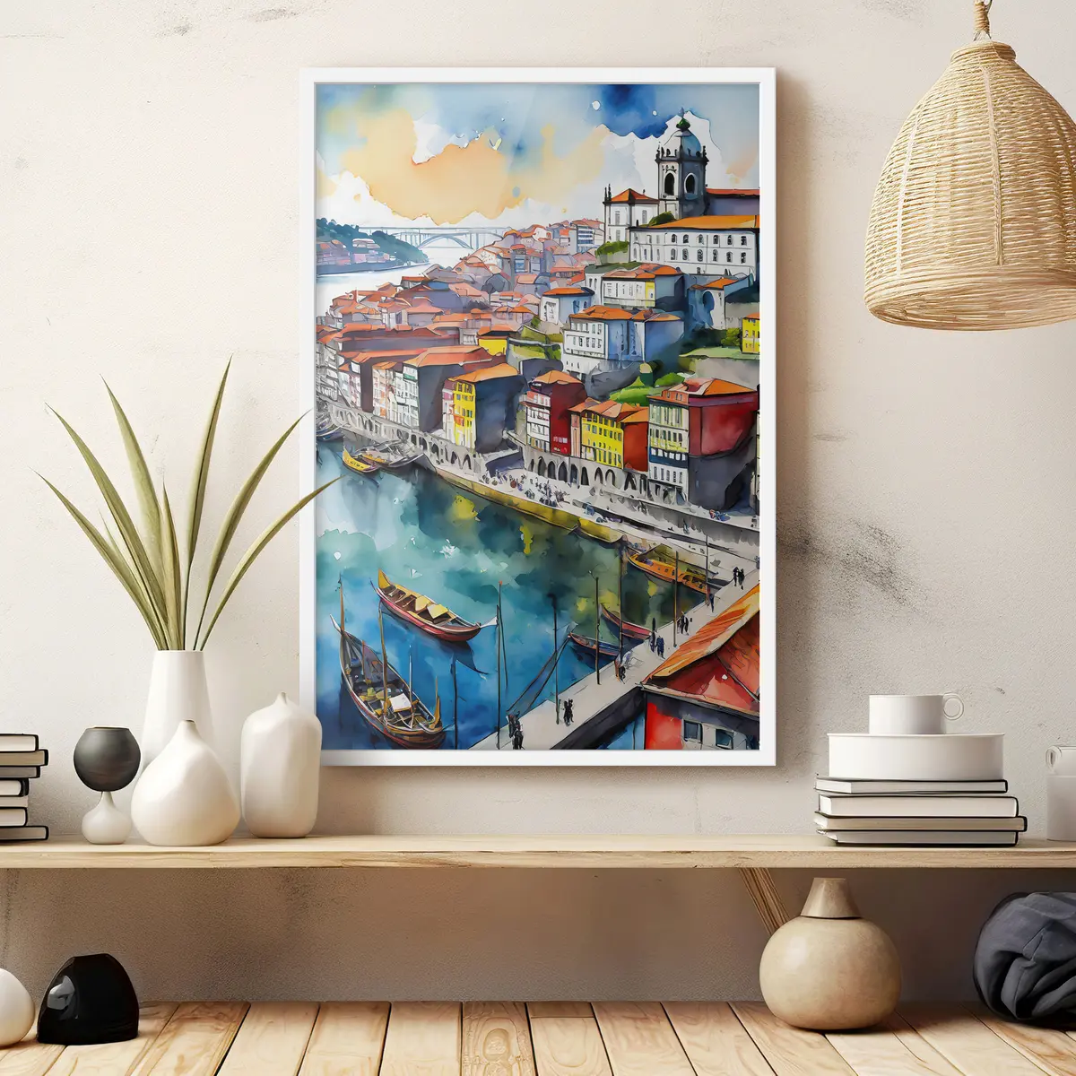 Affiche Ville animée au bord du fleuve, sous le ciel Non f36680