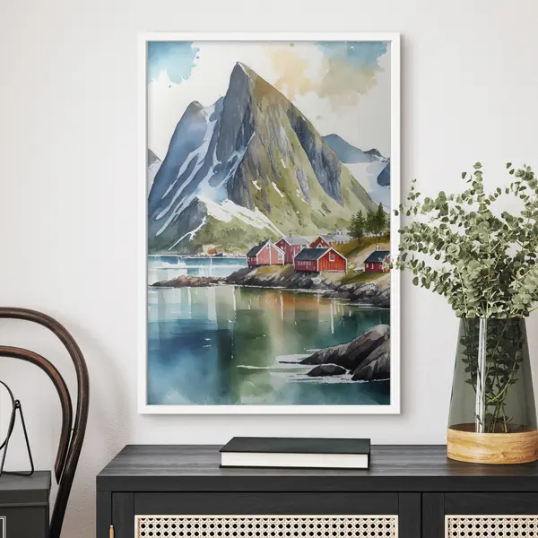 Affiche Village paisible au bord d'un lac de montagne f36685