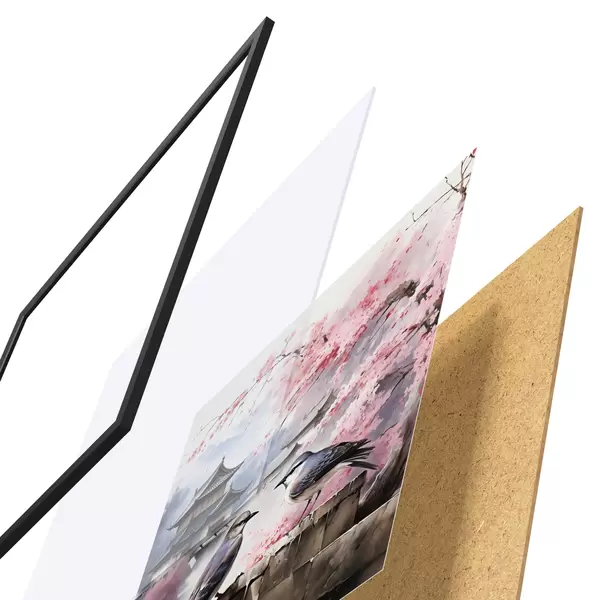 Le poster se compose d'un cadre, d'un plexiglas, d'une image imprimée et d'un support en aggloméré. Le poster peut être immédiatement accroché au mur grâce aux fixations au dos.
