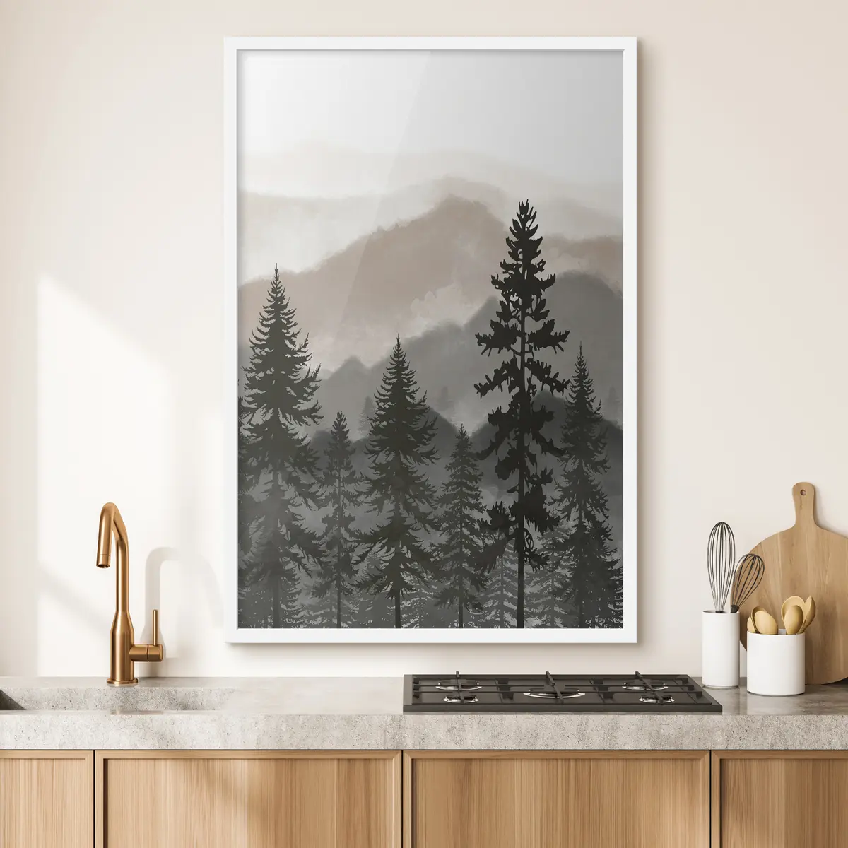 Affiche Montagnes brumeuses avec des arbres imposants f37017v1