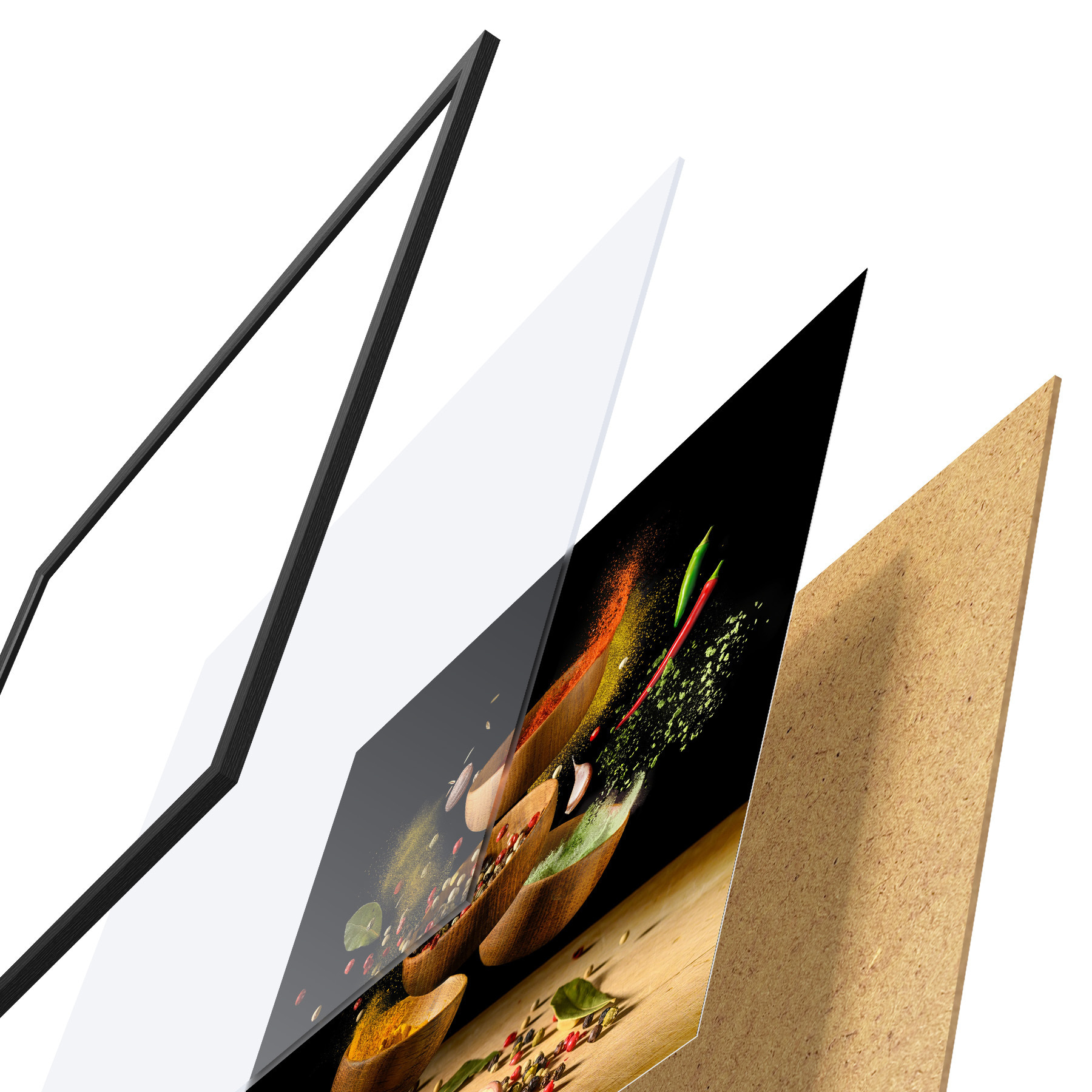Le poster se compose d'un cadre, d'un plexiglas, d'une image imprimée et d'un support en aggloméré. Le poster peut être immédiatement accroché au mur grâce aux fixations au dos.