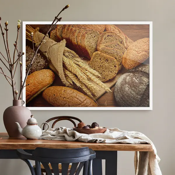 Affiche Présentation d'un assortiment de pains et de blé Non f37047