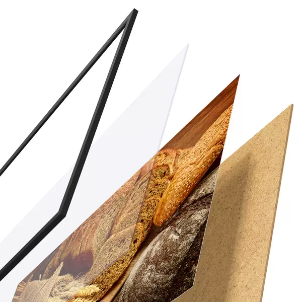 Le poster se compose d'un cadre, d'un plexiglas, d'une image imprimée et d'un support en aggloméré. Le poster peut être immédiatement accroché au mur grâce aux fixations au dos.