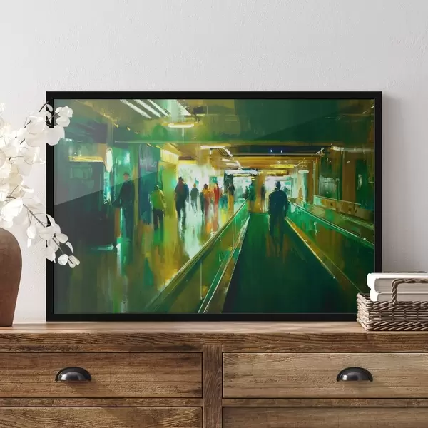 Affiche Un groupe de personnes marchant sur un escalator Non f37103