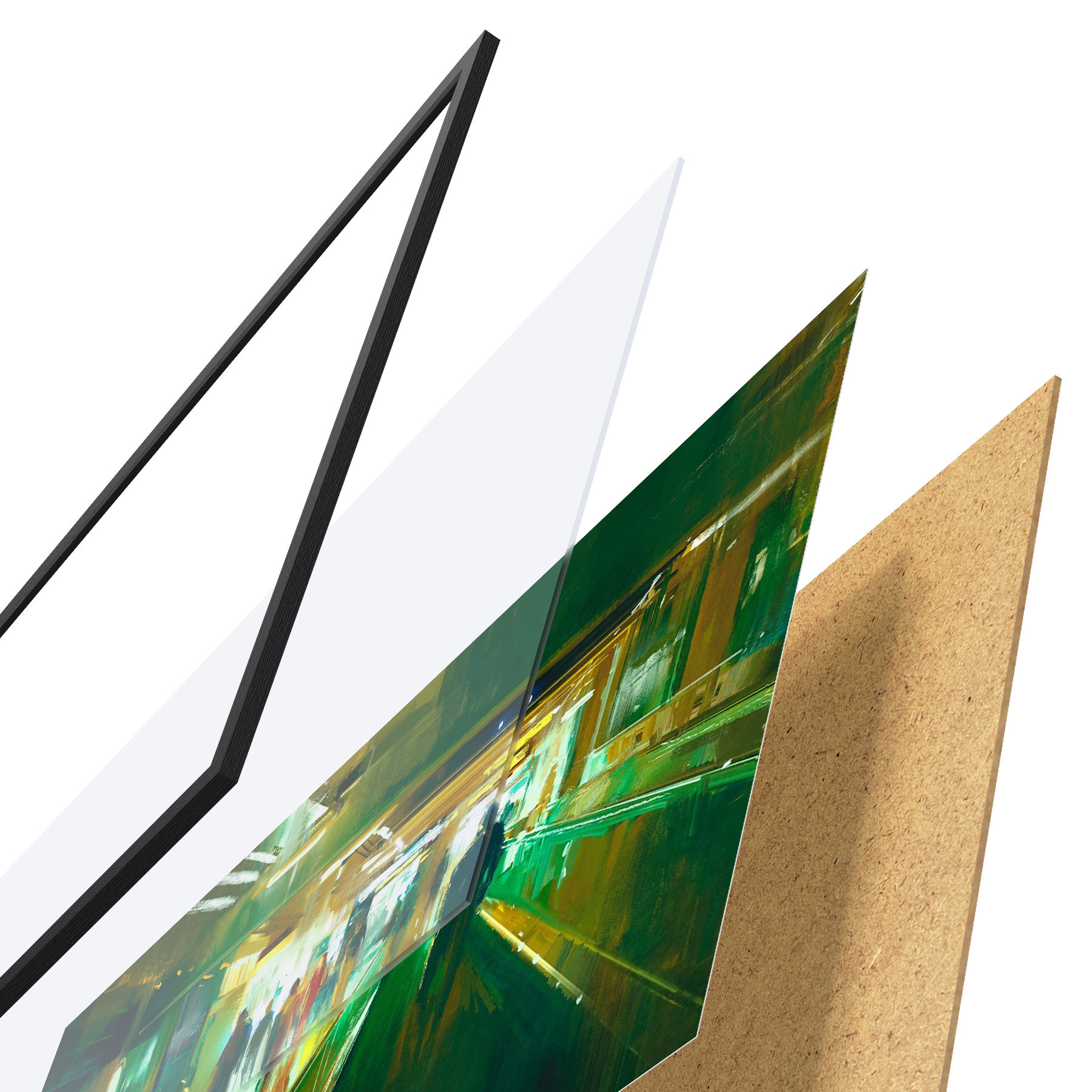 Le poster se compose d'un cadre, d'un plexiglas, d'une image imprimée et d'un support en aggloméré. Le poster peut être immédiatement accroché au mur grâce aux fixations au dos.