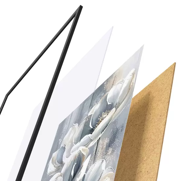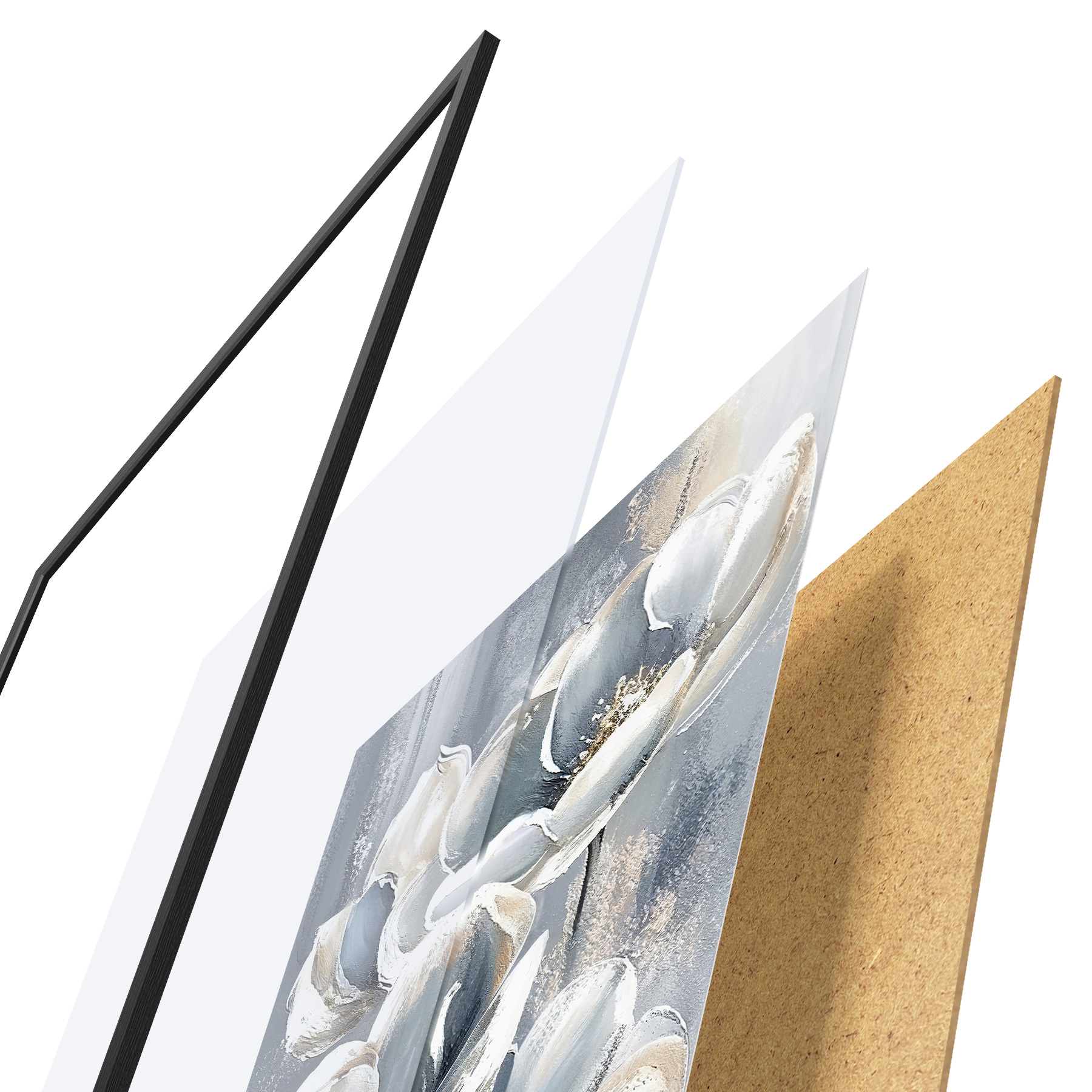 Le poster se compose d'un cadre, d'un plexiglas, d'une image imprimée et d'un support en aggloméré. Le poster peut être immédiatement accroché au mur grâce aux fixations au dos.