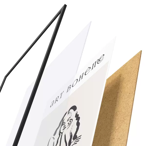 Le poster se compose d'un cadre, d'un plexiglas, d'une image imprimée et d'un support en aggloméré. Le poster peut être immédiatement accroché au mur grâce aux fixations au dos.