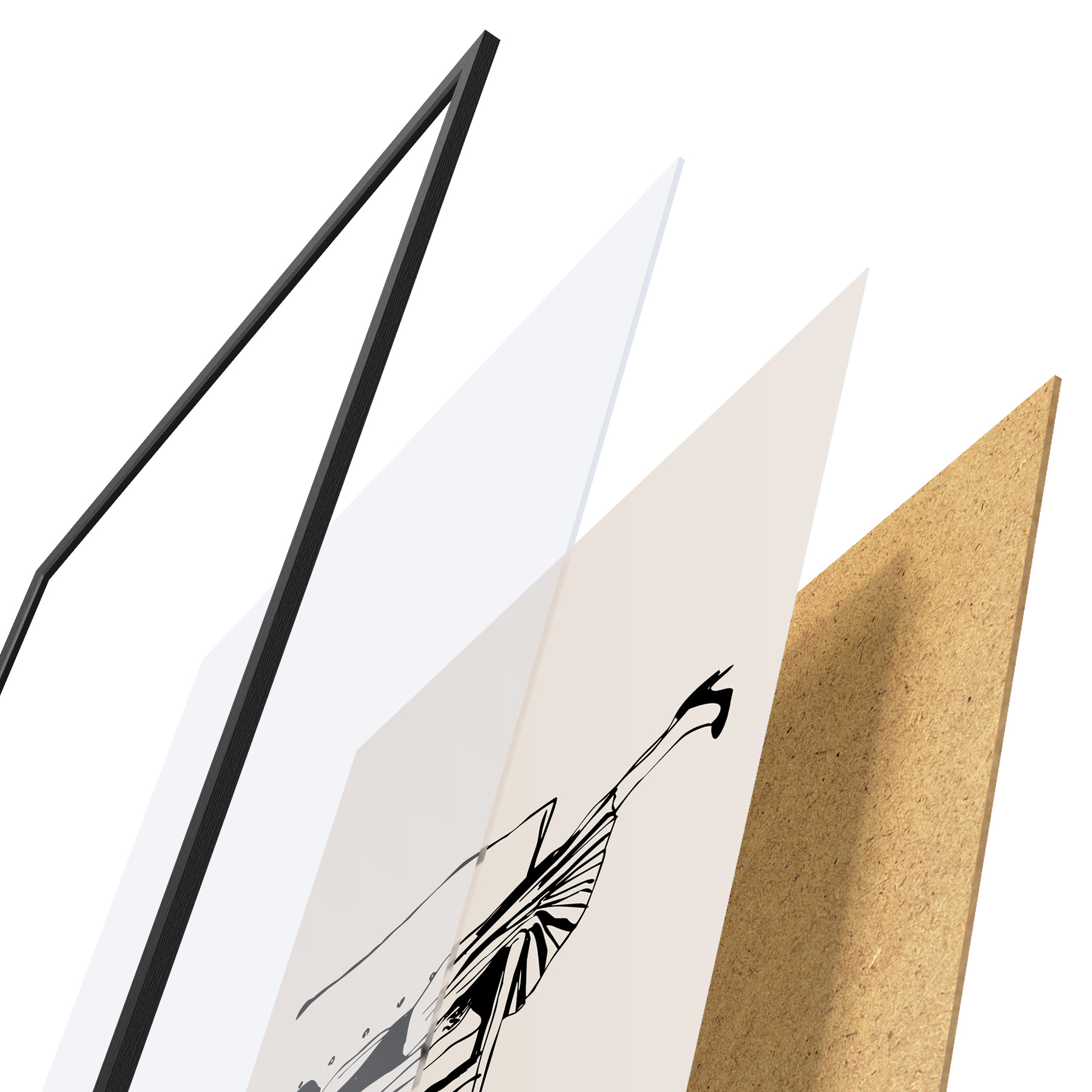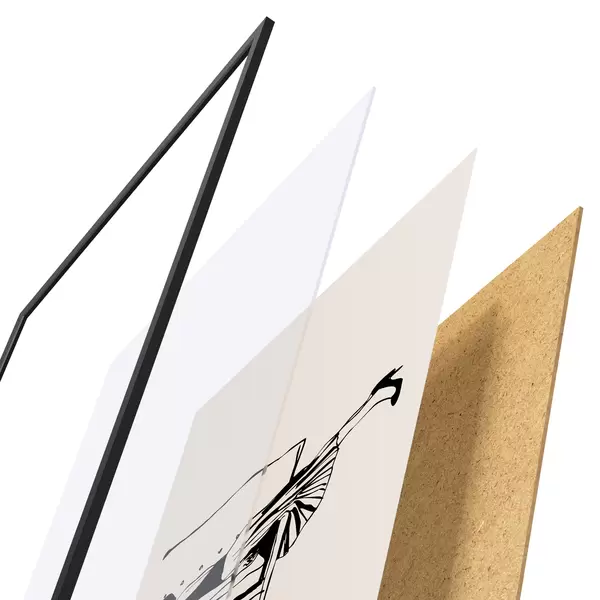 Le poster se compose d'un cadre, d'un plexiglas, d'une image imprimée et d'un support en aggloméré. Le poster peut être immédiatement accroché au mur grâce aux fixations au dos.