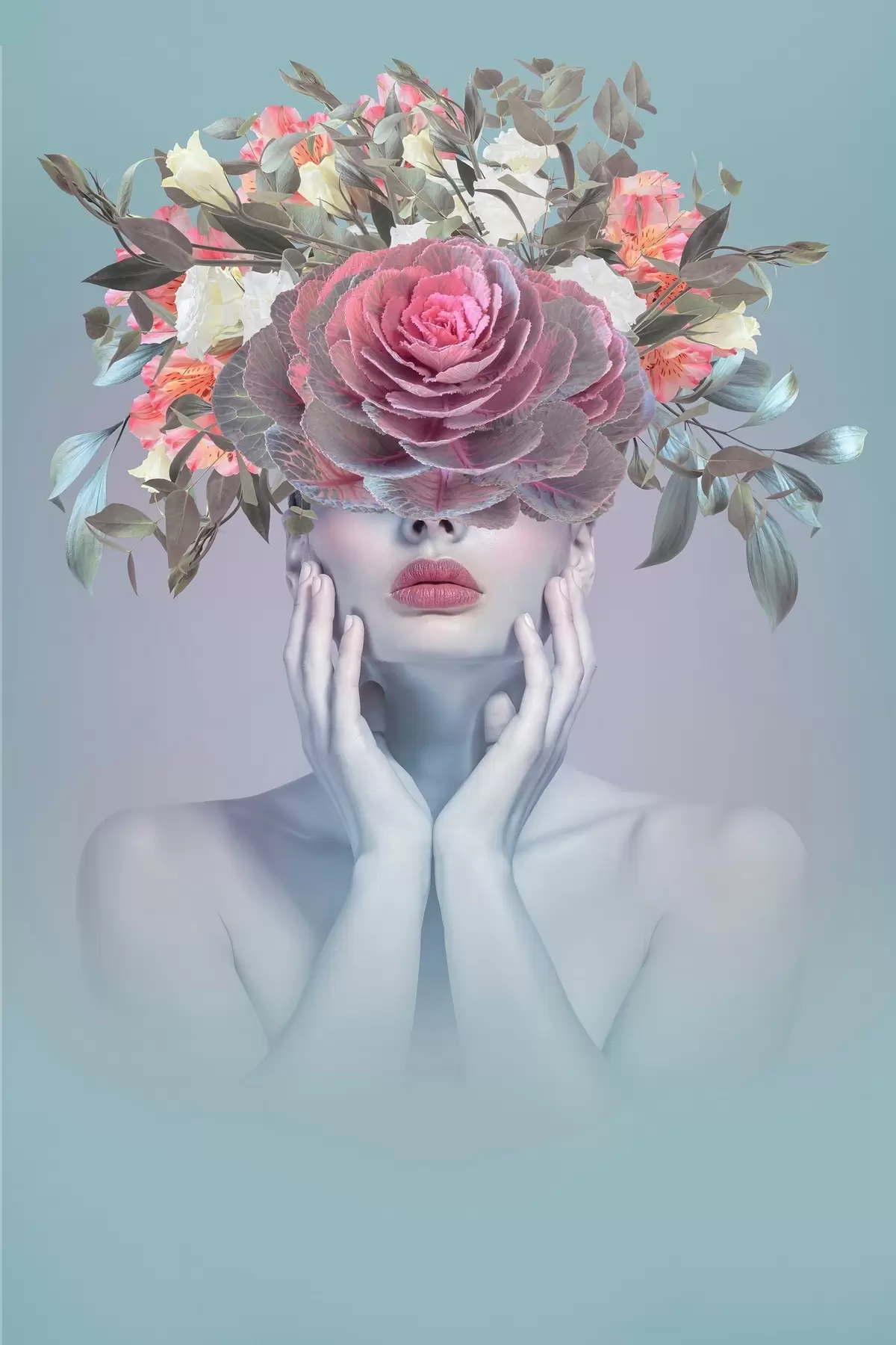 Affiche Femme avec des fleurs sur la tête Non f37479