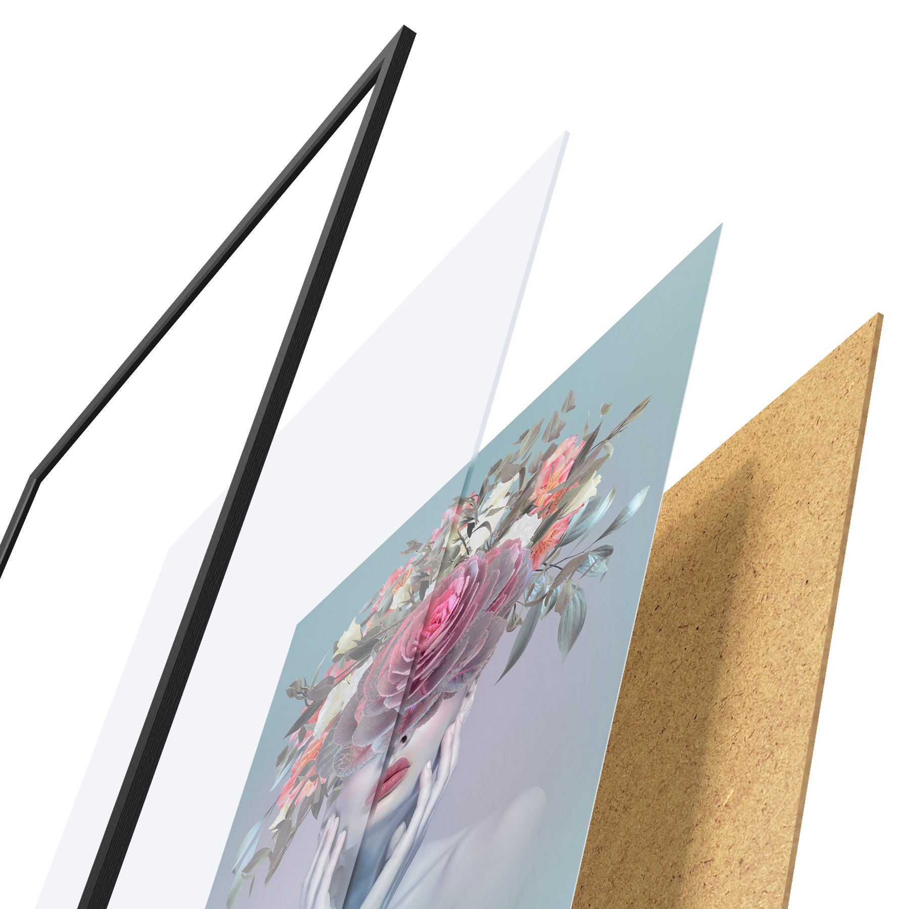 Le poster se compose d'un cadre, d'un plexiglas, d'une image imprimée et d'un support en aggloméré. Le poster peut être immédiatement accroché au mur grâce aux fixations au dos.