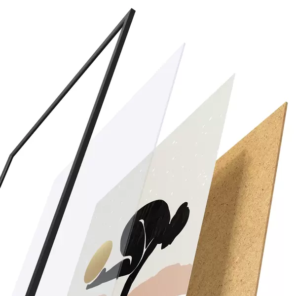 Le poster se compose d'un cadre, d'un plexiglas, d'une image imprimée et d'un support en aggloméré. Le poster peut être immédiatement accroché au mur grâce aux fixations au dos.