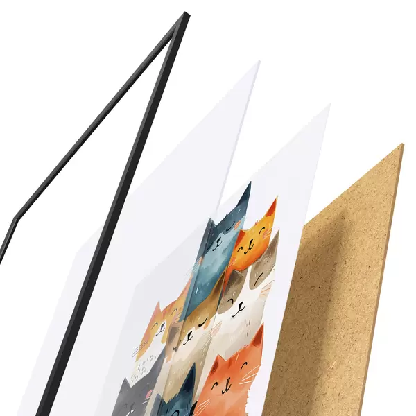 Le poster se compose d'un cadre, d'un plexiglas, d'une image imprimée et d'un support en aggloméré. Le poster peut être immédiatement accroché au mur grâce aux fixations au dos.
