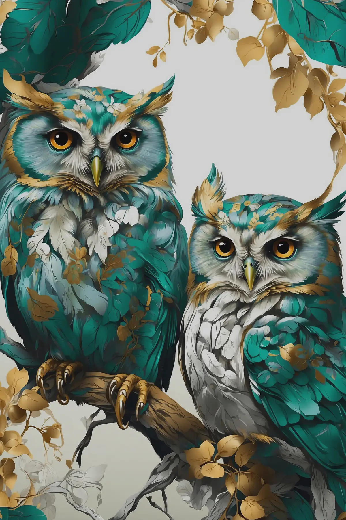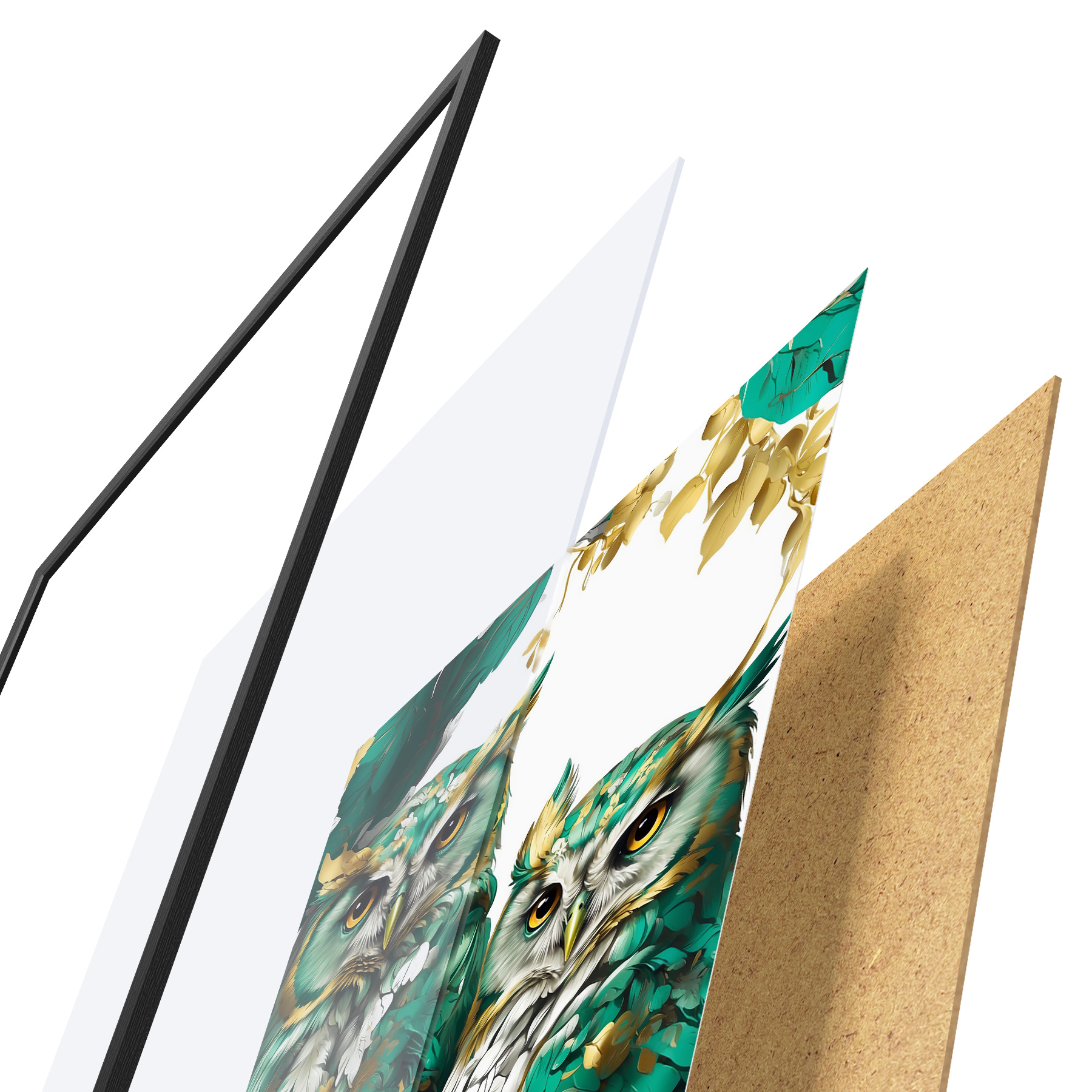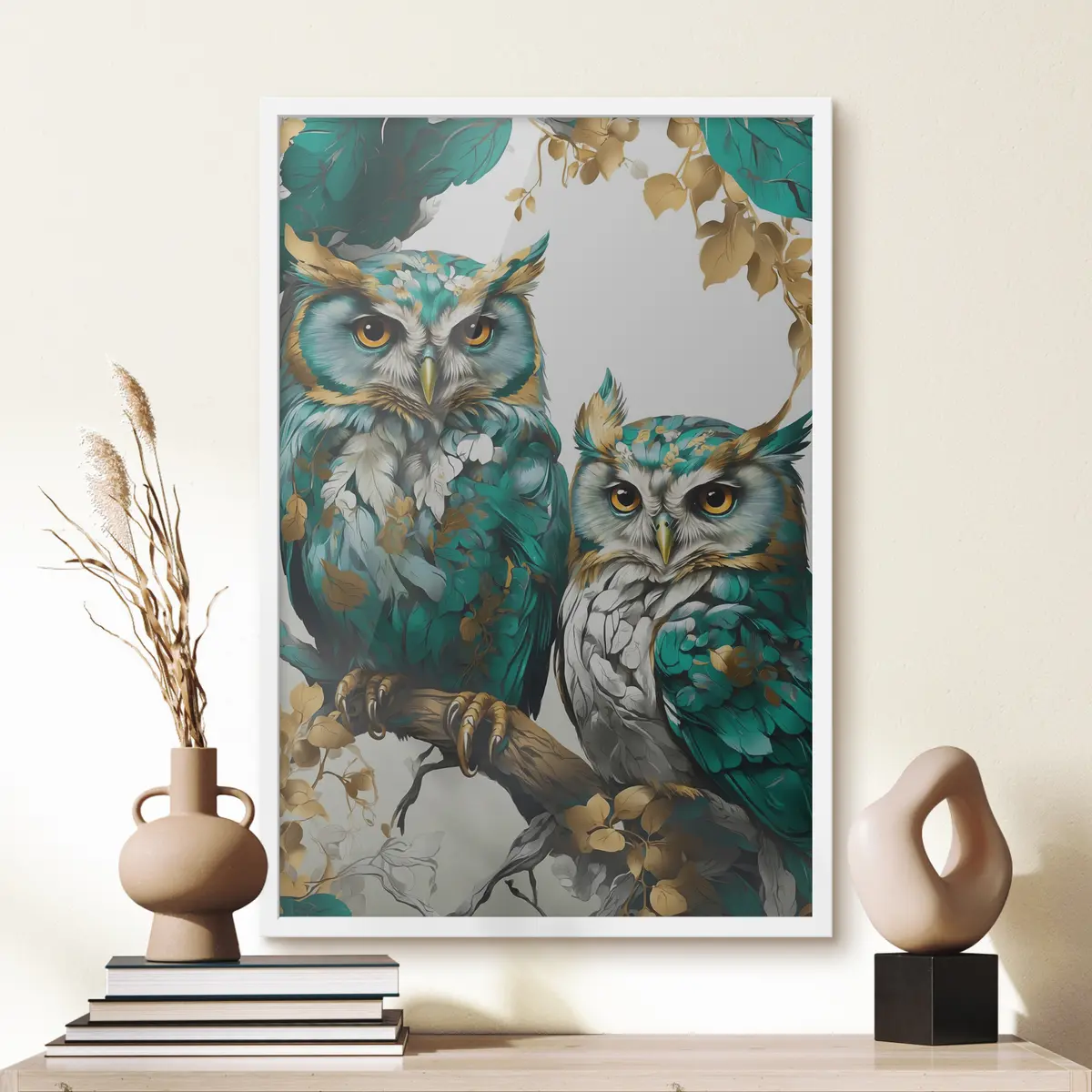 Affiche Deux chouettes vertes dans les feuilles Non f37569