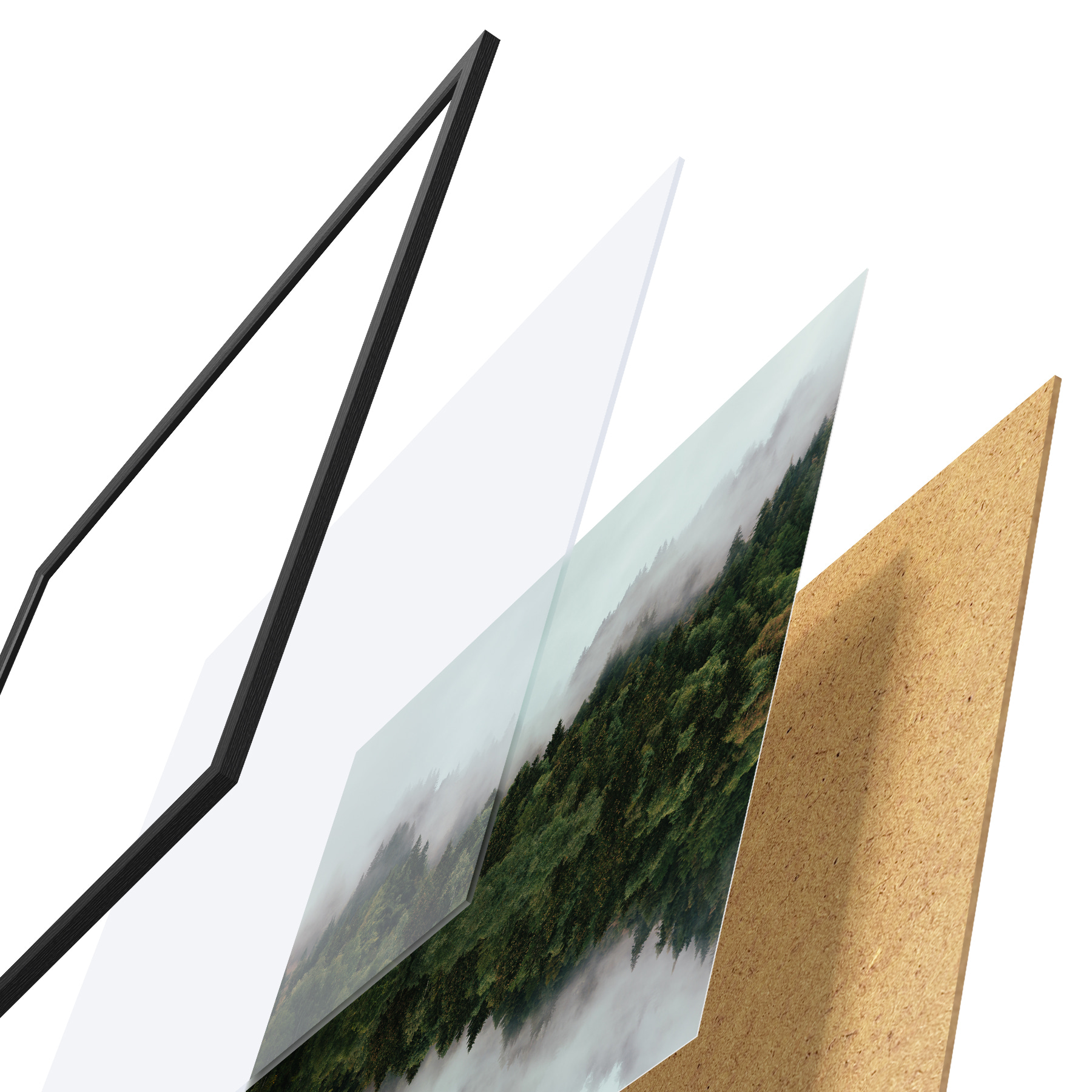 Le poster se compose d'un cadre, d'un plexiglas, d'une image imprimée et d'un support en aggloméré. Le poster peut être immédiatement accroché au mur grâce aux fixations au dos.