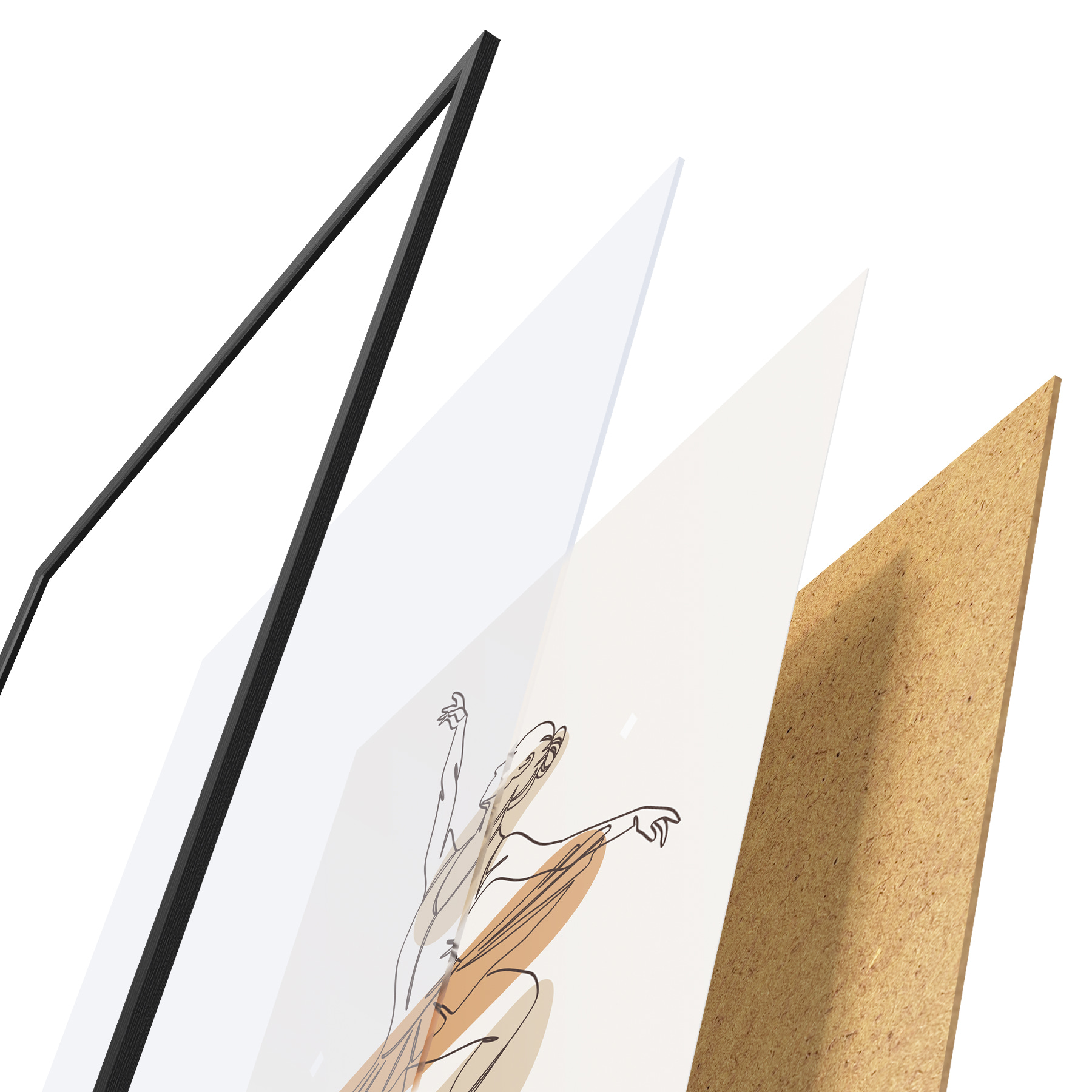 Le poster se compose d'un cadre, d'un plexiglas, d'une image imprimée et d'un support en aggloméré. Le poster peut être immédiatement accroché au mur grâce aux fixations au dos.