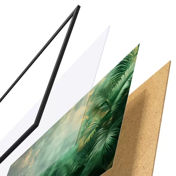 Le poster se compose d'un cadre, d'un plexiglas, d'une image imprimée et d'un support en aggloméré. Le poster peut être immédiatement accroché au mur grâce aux fixations au dos.