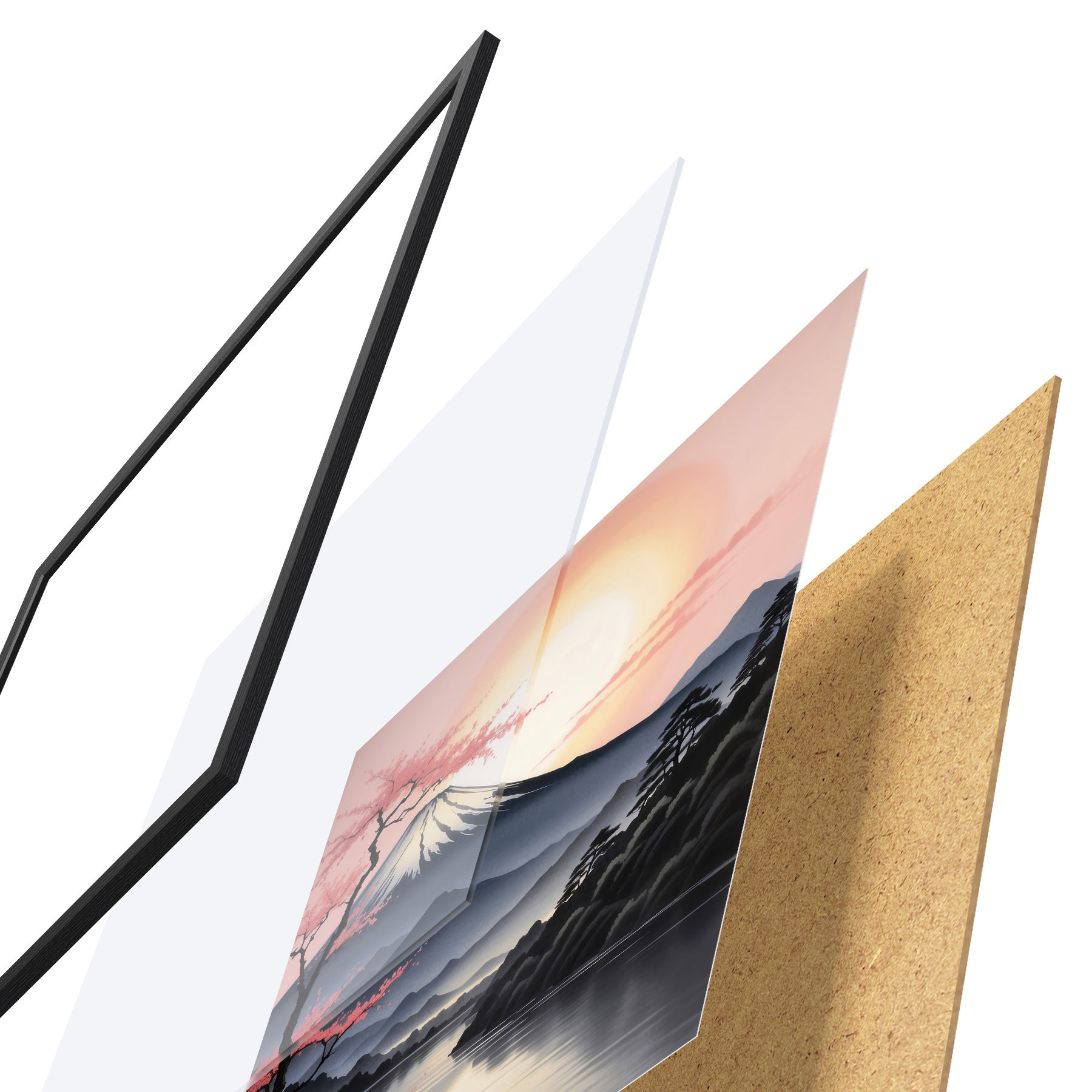 Le poster se compose d'un cadre, d'un plexiglas, d'une image imprimée et d'un support en aggloméré. Le poster peut être immédiatement accroché au mur grâce aux fixations au dos.