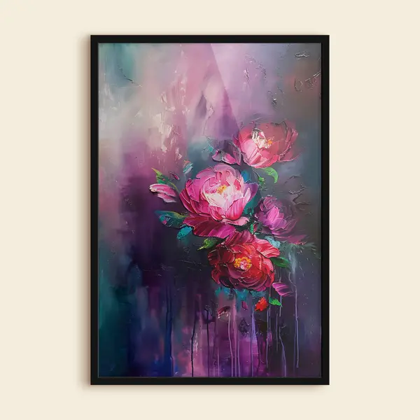 Affiche Peindre des roses, des fleurs épanouies dans un style de peinture à l'huile, sur un fond violet foncé Non f38108