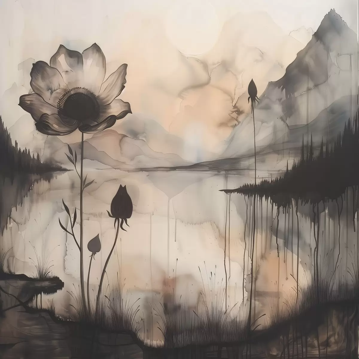 Affiche Image d'une fleur et d'un lac Non f38161