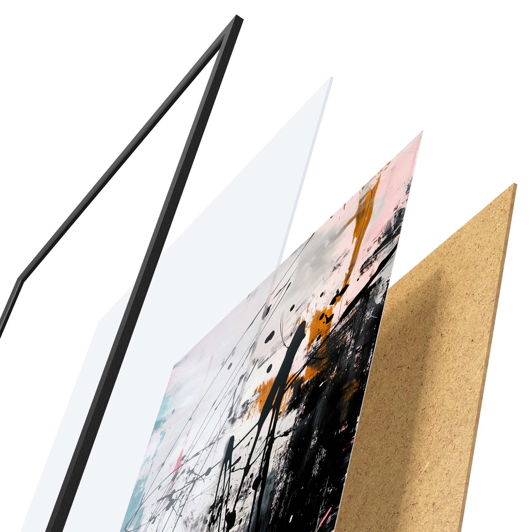 Le poster se compose d'un cadre, d'un plexiglas, d'une image imprimée et d'un support en aggloméré. Le poster peut être immédiatement accroché au mur grâce aux fixations au dos.