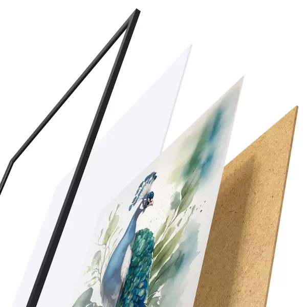 Le poster se compose d'un cadre, d'un plexiglas, d'une image imprimée et d'un support en aggloméré. Le poster peut être immédiatement accroché au mur grâce aux fixations au dos.