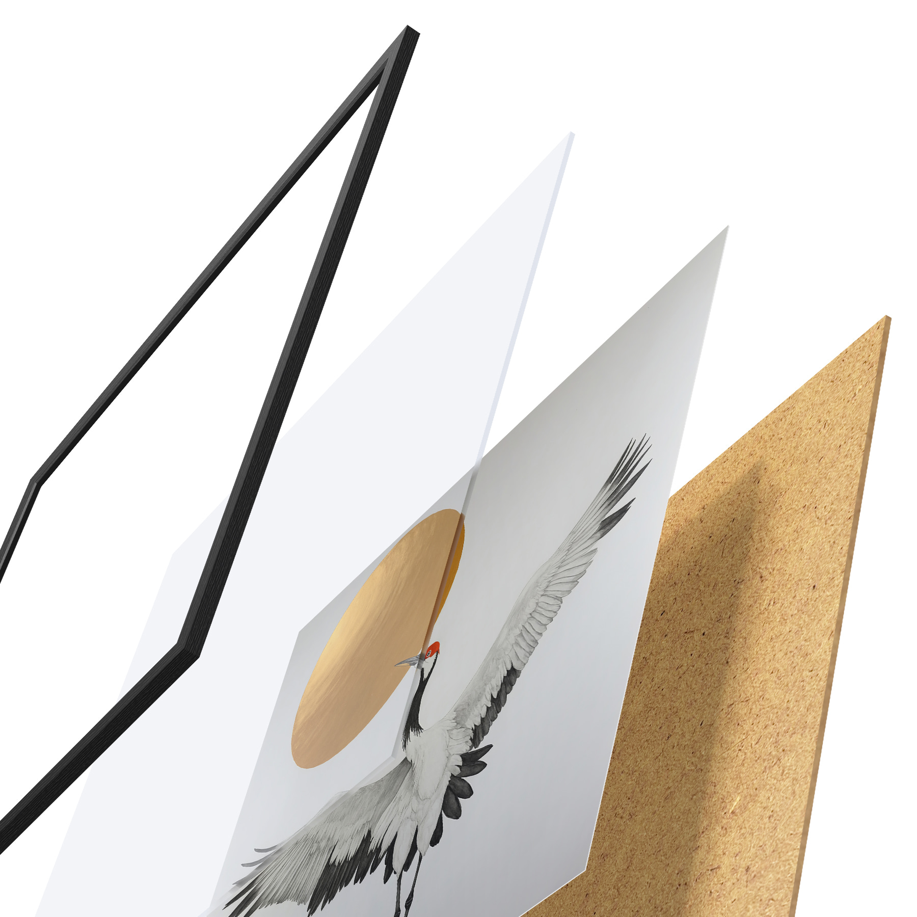 Le poster se compose d'un cadre, d'un plexiglas, d'une image imprimée et d'un support en aggloméré. Le poster peut être immédiatement accroché au mur grâce aux fixations au dos.