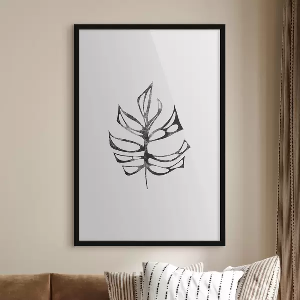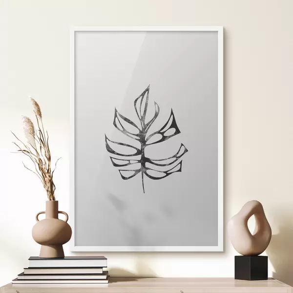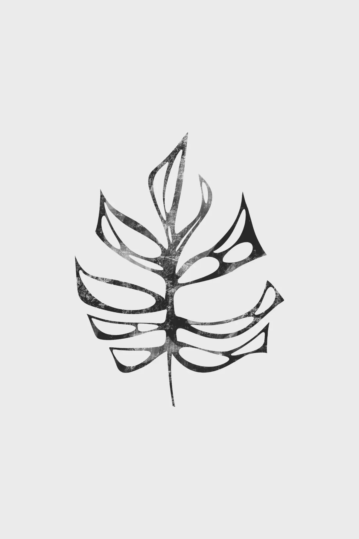 Affiche Feuille décorative avec découpes et trous, tropical, couleur noire texturée, minimalisme, floral f38342