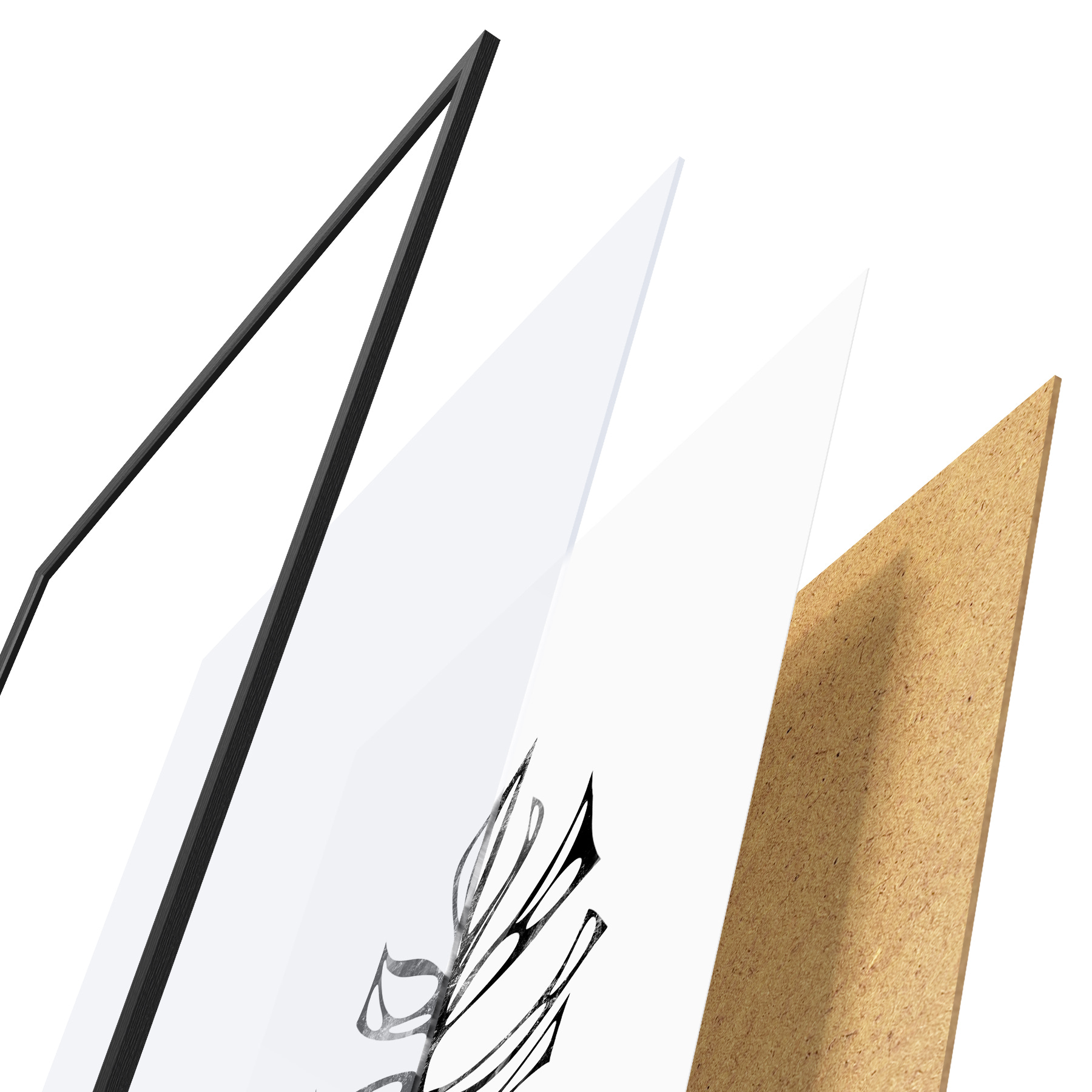 Le poster se compose d'un cadre, d'un plexiglas, d'une image imprimée et d'un support en aggloméré. Le poster peut être immédiatement accroché au mur grâce aux fixations au dos.