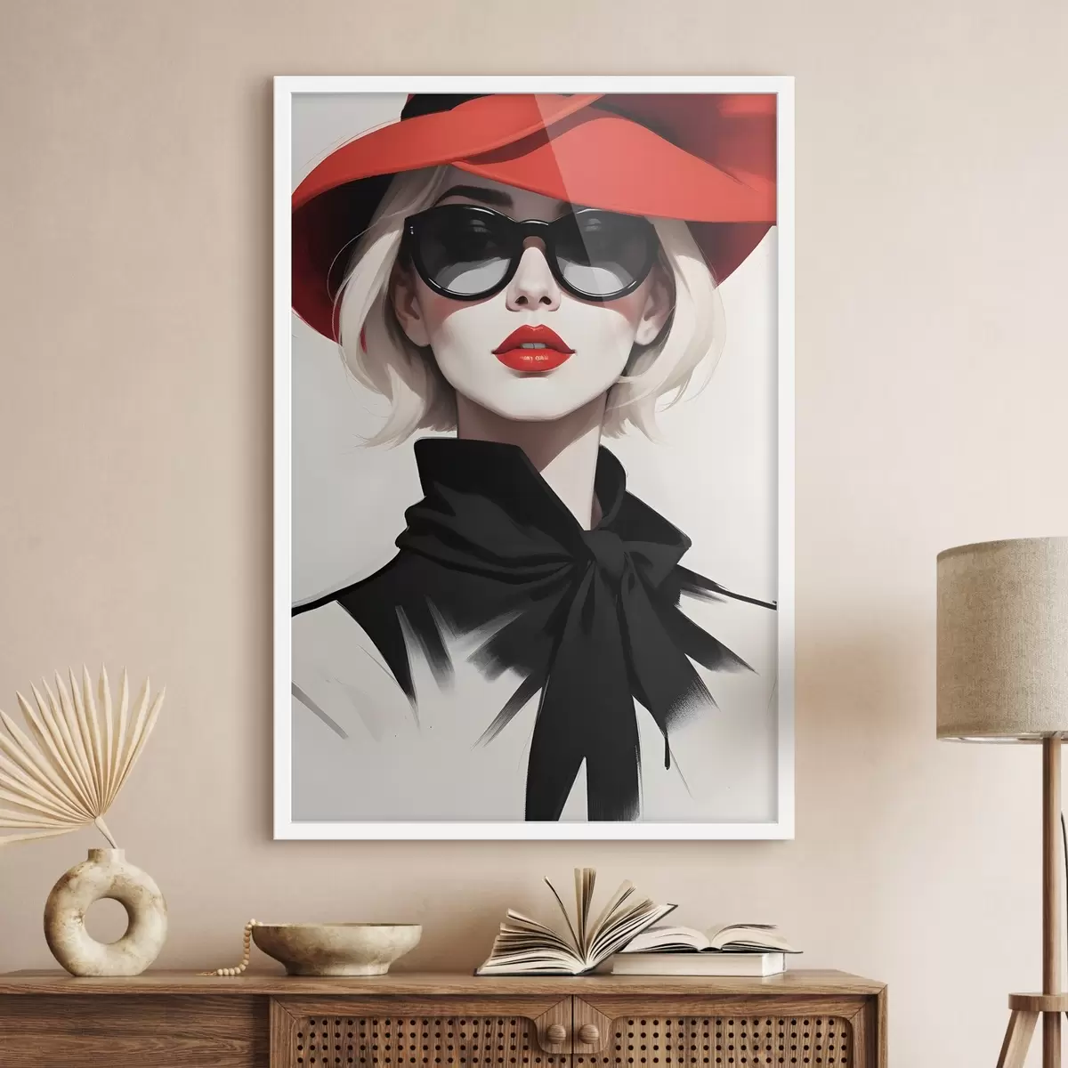 Affiche Une femme portant un chapeau rouge et des lunettes de soleil f38365