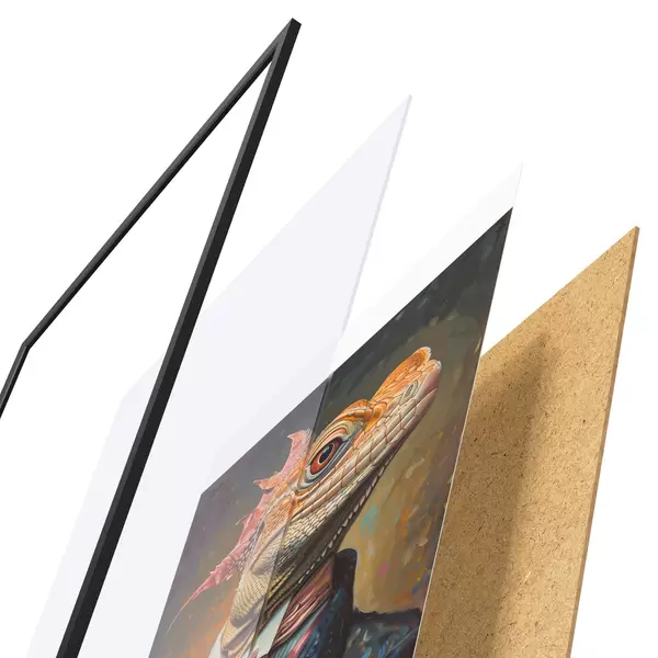 Le poster se compose d'un cadre, d'un plexiglas, d'une image imprimée et d'un support en aggloméré. Le poster peut être immédiatement accroché au mur grâce aux fixations au dos.