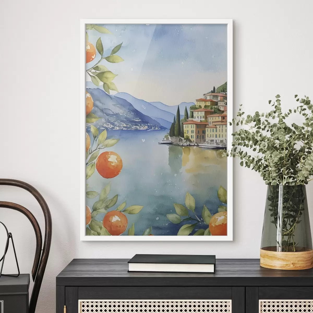 Affiche Une aquarelle représentant une ville au bord d'un réservoir Non f38402