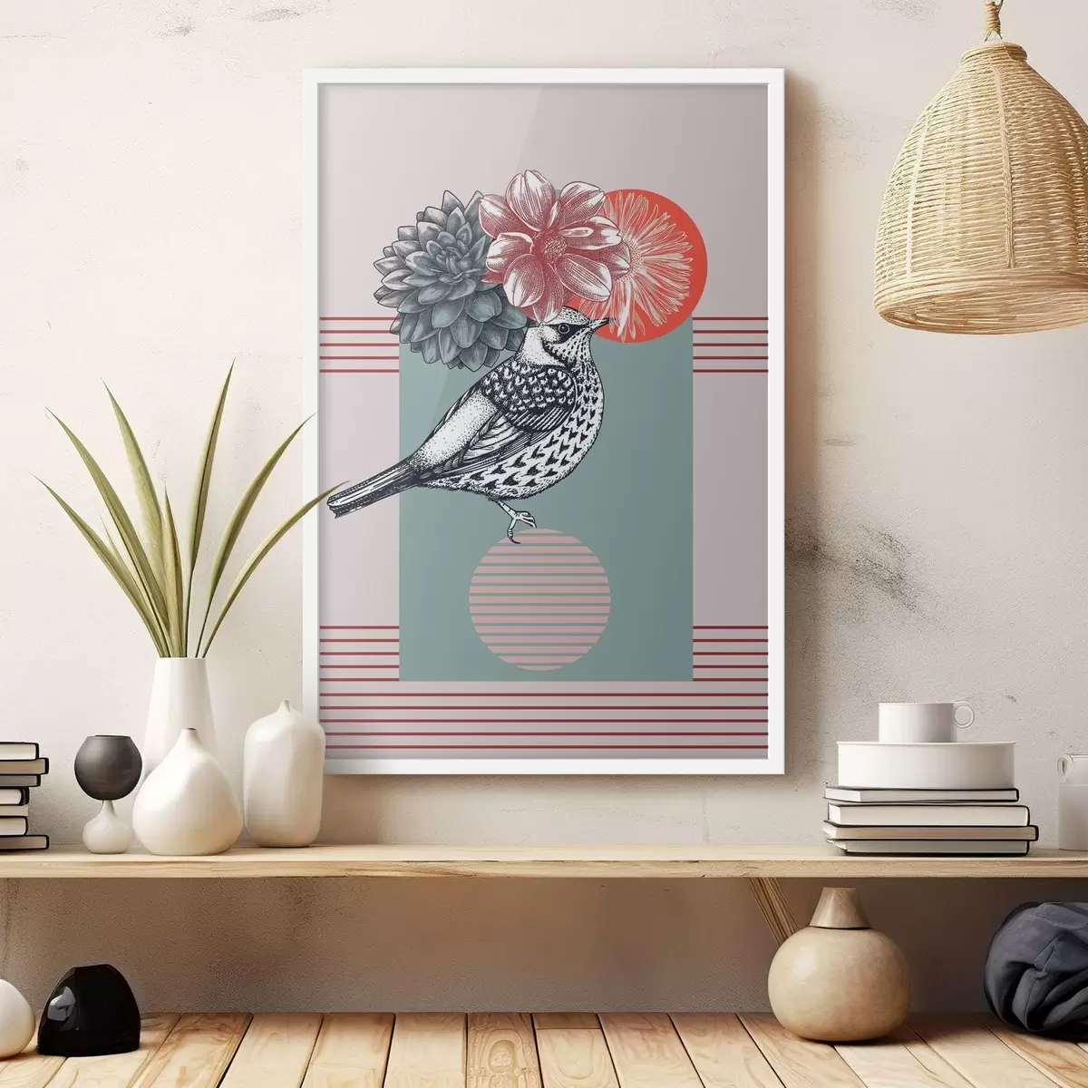Affiche Un oiseau avec des fleurs sur la tête Non f38442