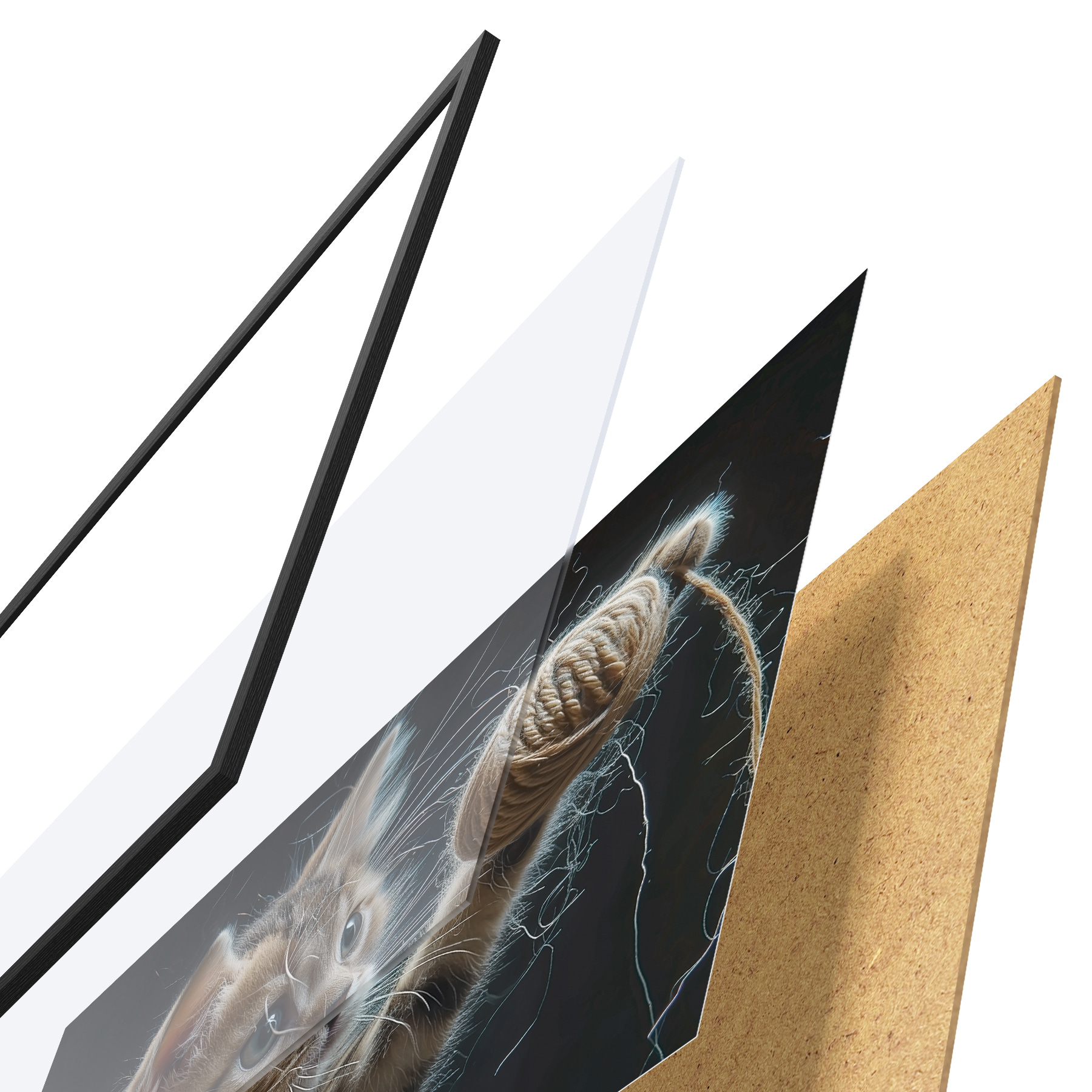 Le poster se compose d'un cadre, d'un plexiglas, d'une image imprimée et d'un support en aggloméré. Le poster peut être immédiatement accroché au mur grâce aux fixations au dos.