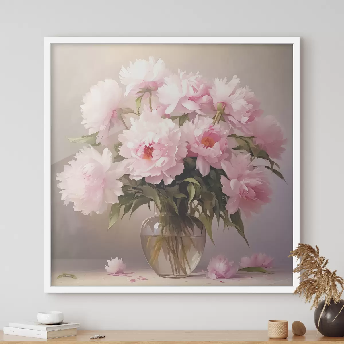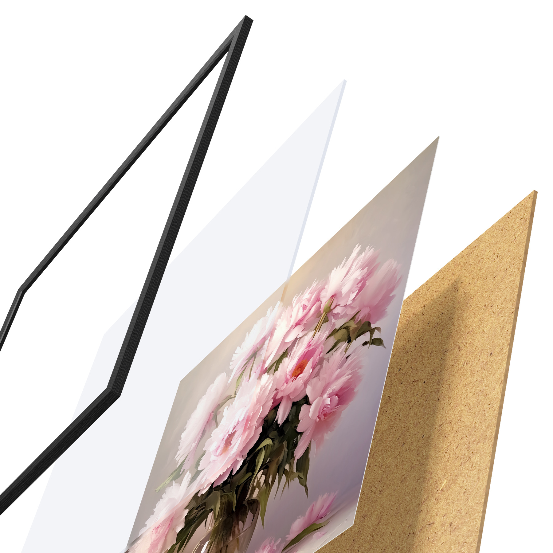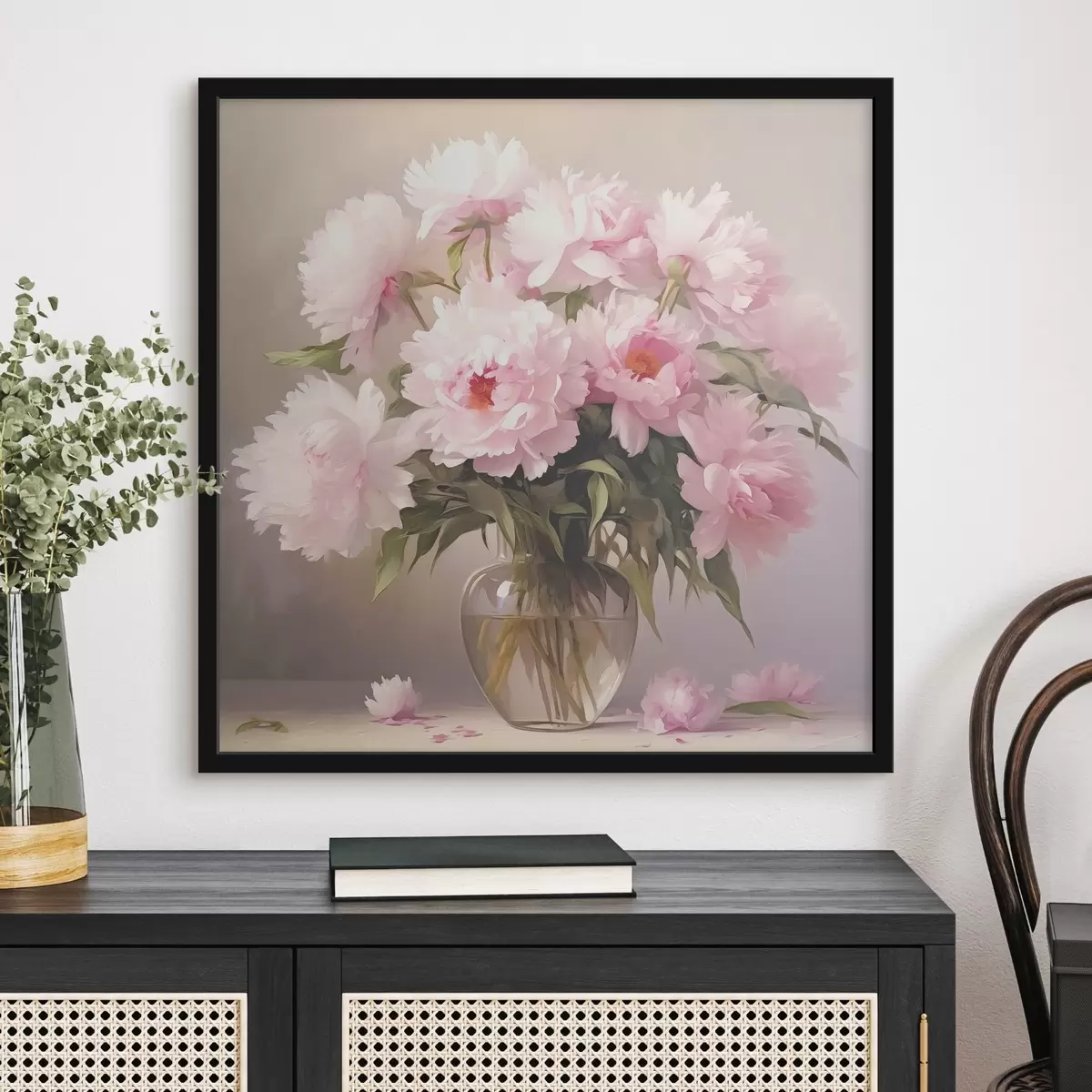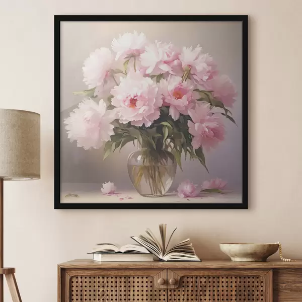 Affiche Pivoines roses dans un vase en verre sur fond noir, imitation d'une peinture à l'huile, fleurs Non f38482