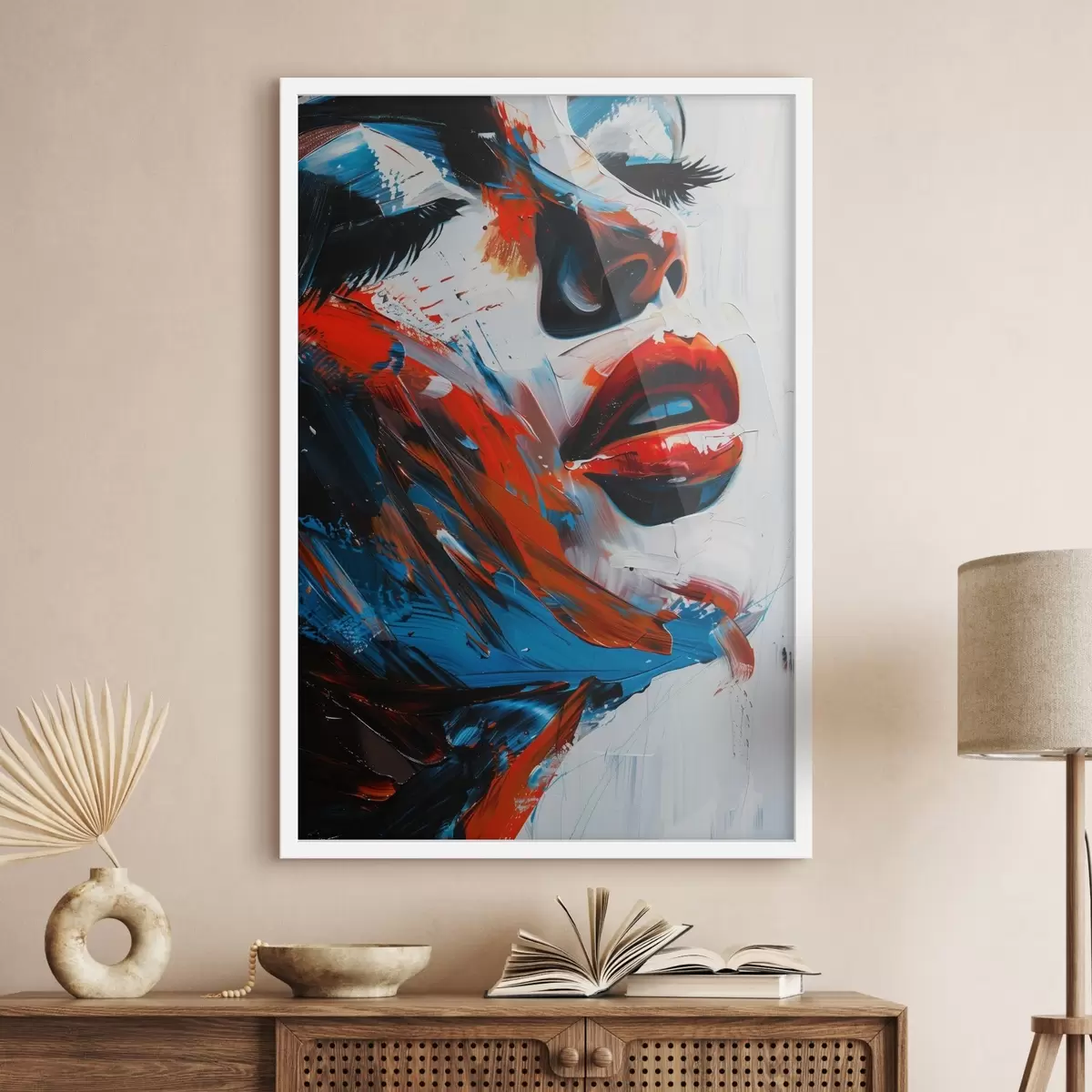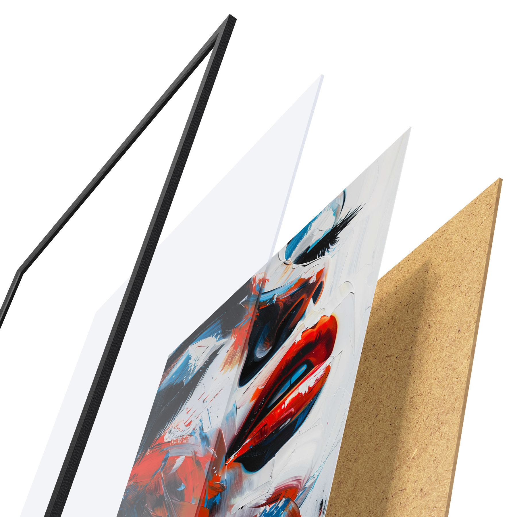 Le poster se compose d'un cadre, d'un plexiglas, d'une image imprimée et d'un support en aggloméré. Le poster peut être immédiatement accroché au mur grâce aux fixations au dos.