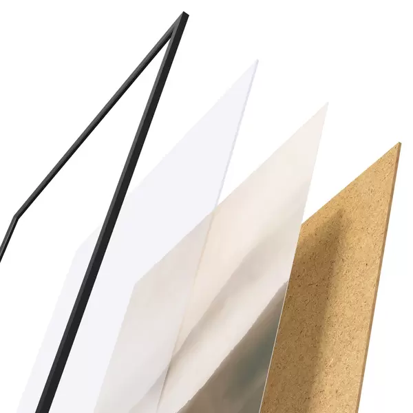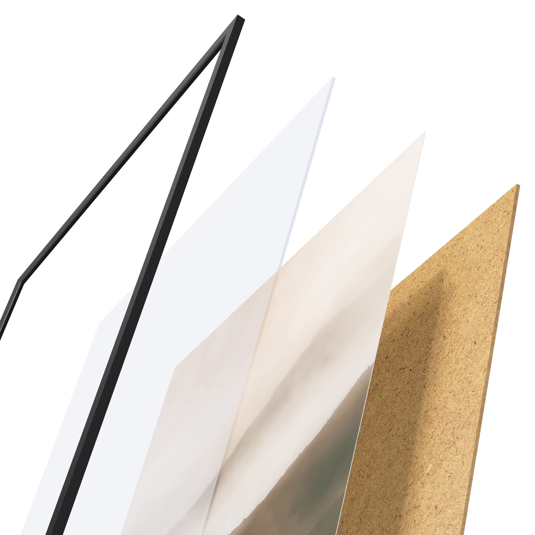 Le poster se compose d'un cadre, d'un plexiglas, d'une image imprimée et d'un support en aggloméré. Le poster peut être immédiatement accroché au mur grâce aux fixations au dos.