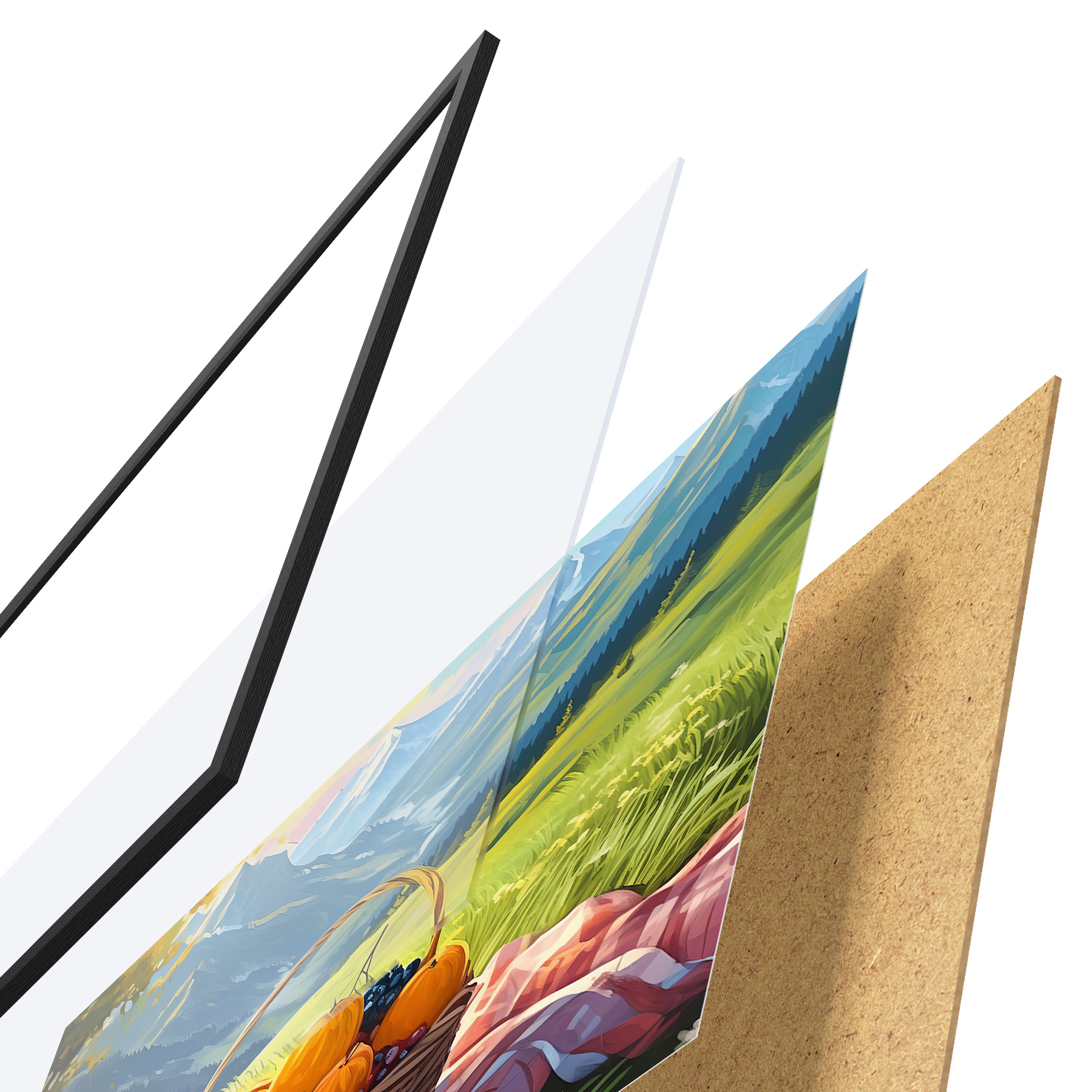 Le poster se compose d'un cadre, d'un plexiglas, d'une image imprimée et d'un support en aggloméré. Le poster peut être immédiatement accroché au mur grâce aux fixations au dos.