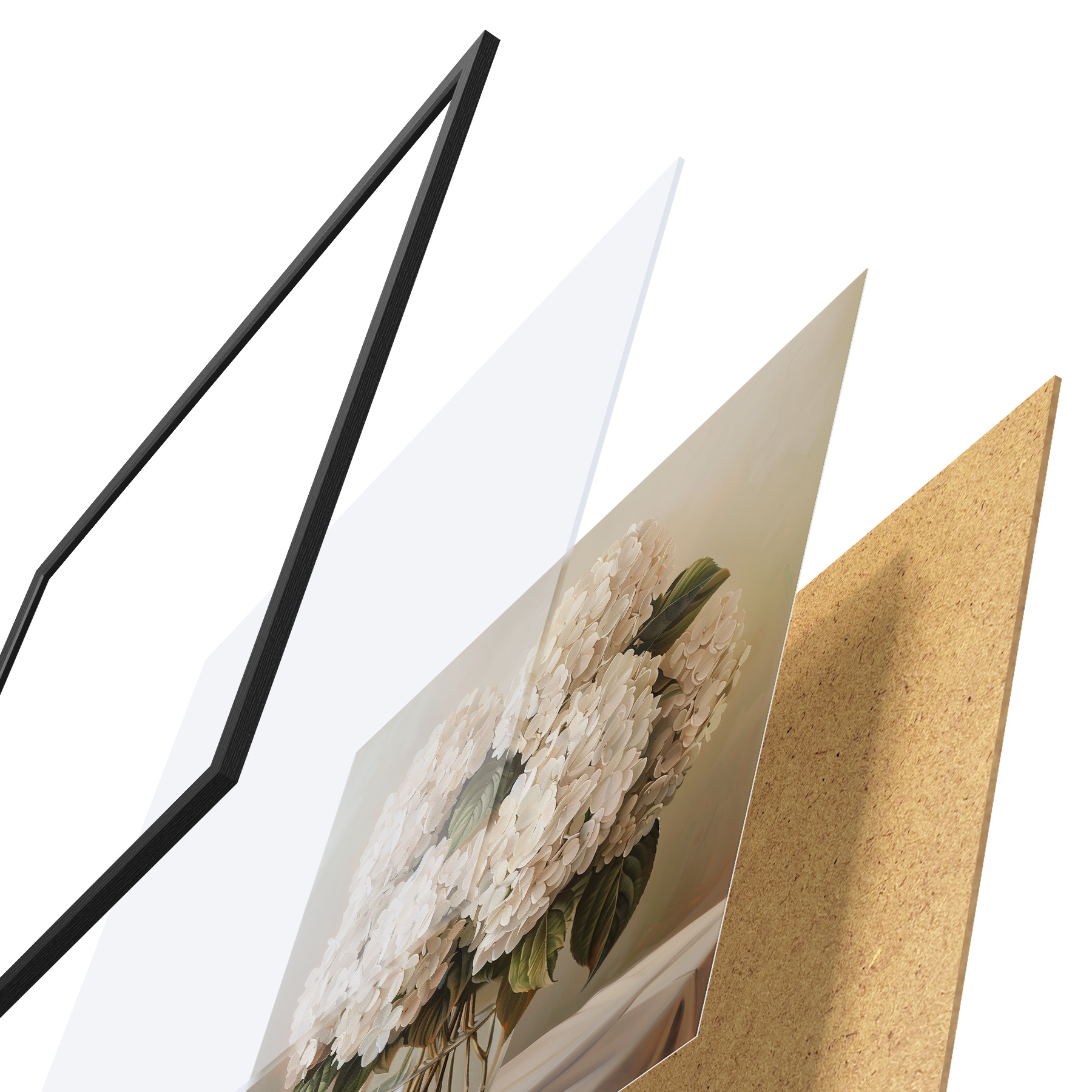 Le poster se compose d'un cadre, d'un plexiglas, d'une image imprimée et d'un support en aggloméré. Le poster peut être immédiatement accroché au mur grâce aux fixations au dos.
