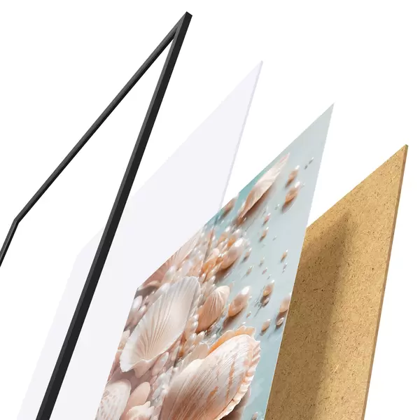Le poster se compose d'un cadre, d'un plexiglas, d'une image imprimée et d'un support en aggloméré. Le poster peut être immédiatement accroché au mur grâce aux fixations au dos.