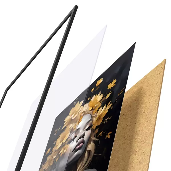 Le poster se compose d'un cadre, d'un plexiglas, d'une image imprimée et d'un support en aggloméré. Le poster peut être immédiatement accroché au mur grâce aux fixations au dos.