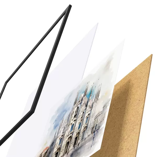 Le poster se compose d'un cadre, d'un plexiglas, d'une image imprimée et d'un support en aggloméré. Le poster peut être immédiatement accroché au mur grâce aux fixations au dos.