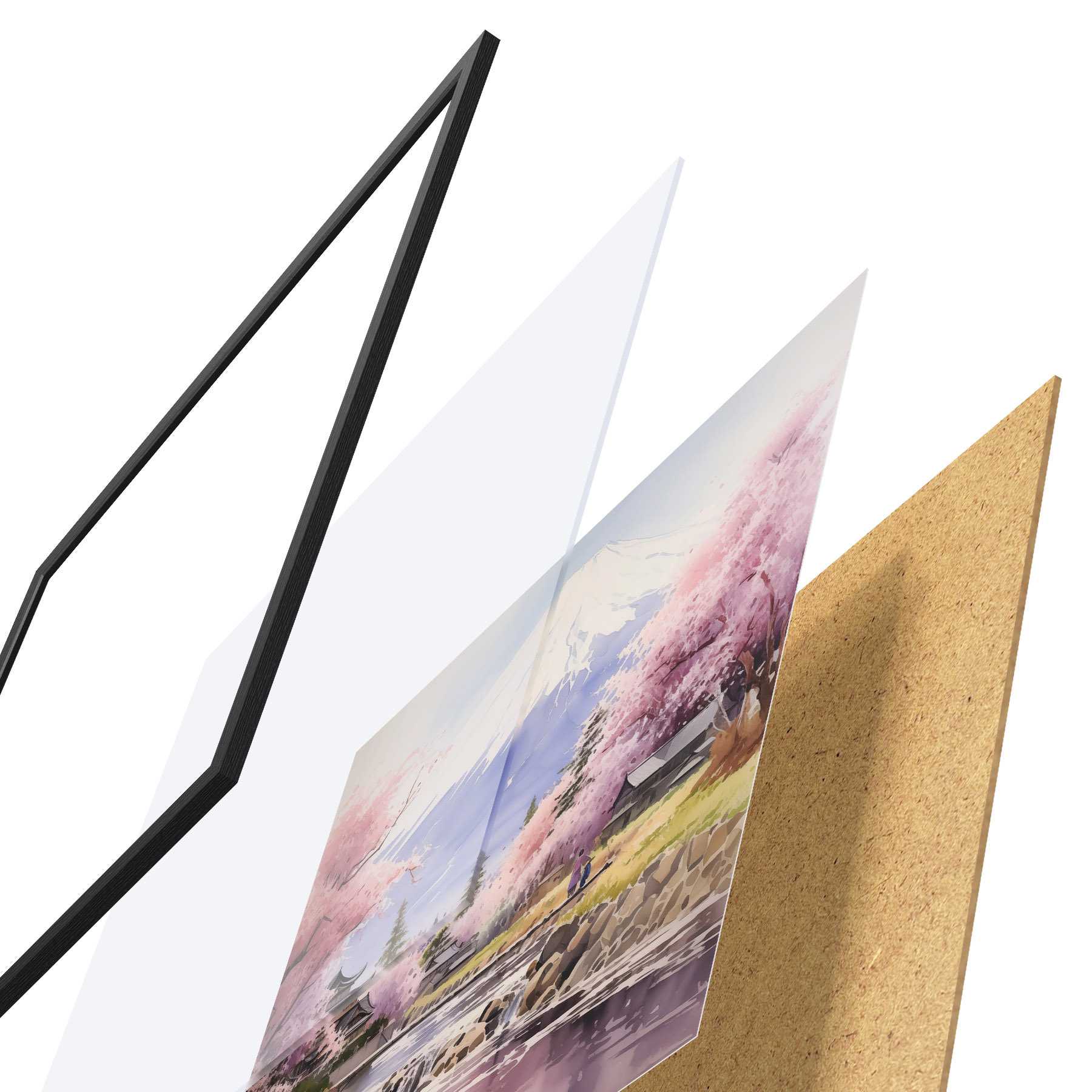 Le poster se compose d'un cadre, d'un plexiglas, d'une image imprimée et d'un support en aggloméré. Le poster peut être immédiatement accroché au mur grâce aux fixations au dos.