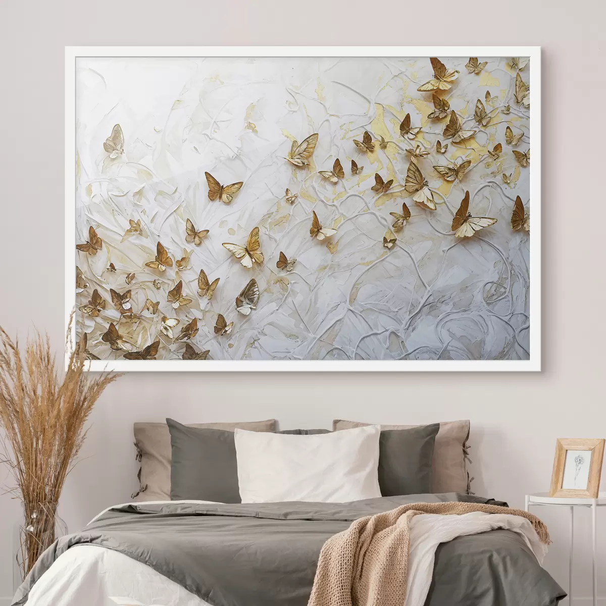 Affiche Un grand groupe de papillons sur fond blanc, créant un motif magnifique et complexe f38970