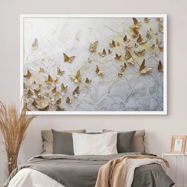 Affiche Un grand groupe de papillons sur fond blanc, créant un motif magnifique et complexe Non f38970