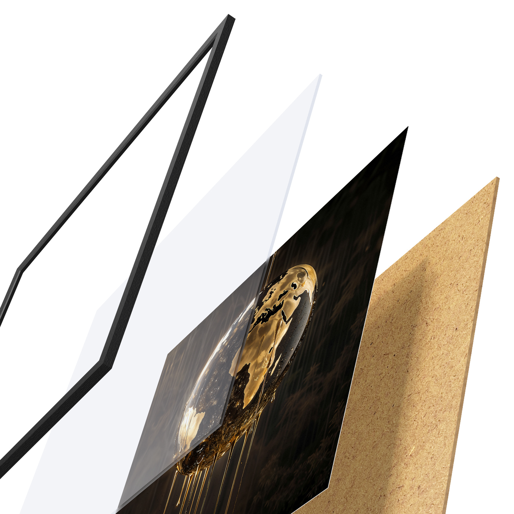 Le poster se compose d'un cadre, d'un plexiglas, d'une image imprimée et d'un support en aggloméré. Le poster peut être immédiatement accroché au mur grâce aux fixations au dos.