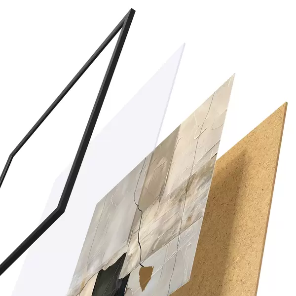 Le poster se compose d'un cadre, d'un plexiglas, d'une image imprimée et d'un support en aggloméré. Le poster peut être immédiatement accroché au mur grâce aux fixations au dos.