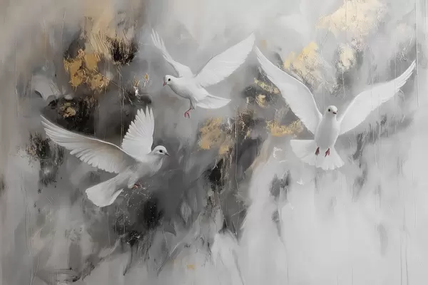 Affiche Colombes blanches sur fond gris f39101
